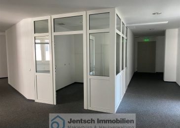 Die Bürofläche befindet sich in der 2. Etage eines Wohn- und Geschäftshauses in der Innenstadt Merseburgs, die mit Personenaufzug bequem zu erreichen ist. Die Fläche beinhaltet 7 Büroräume in der Größe von 23 bis 64 m² sowie ein Kellerarchiv. Die Büroräume können als Unterrichtsräume, Großraumbüros o.ä. genutzt werden. Eine neue Toilette und eine Küche werden unter Abstimmung mit dem Mieter auf Kosten des Vermieters neu installiert. Der Vermieter ist ebenfalls bereit, diverse Umbauarbeiten in Abstimmung mit dem Mieter auf Kosten des Vermieters vorzunehmen. Mindestens 5 Tiefgaragenstellplätze (Duplex) können für 45,00 Euro monatlich je Stellplatz dazu gemietet werden. Die Wärme wird über Fernwärme, das Warmwasser wird über E-Durchlauferhitzer erzeugt.